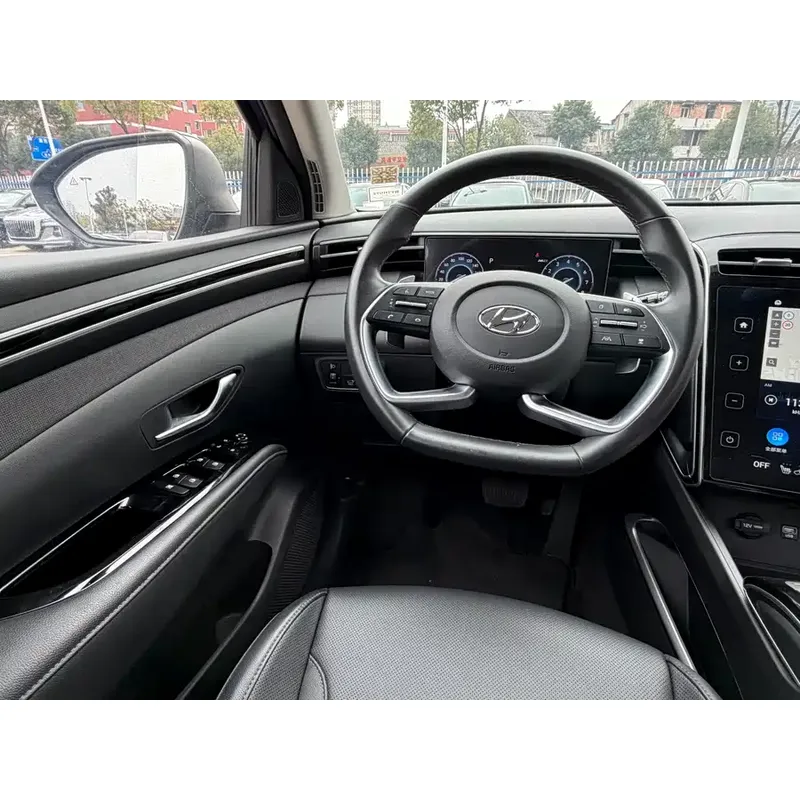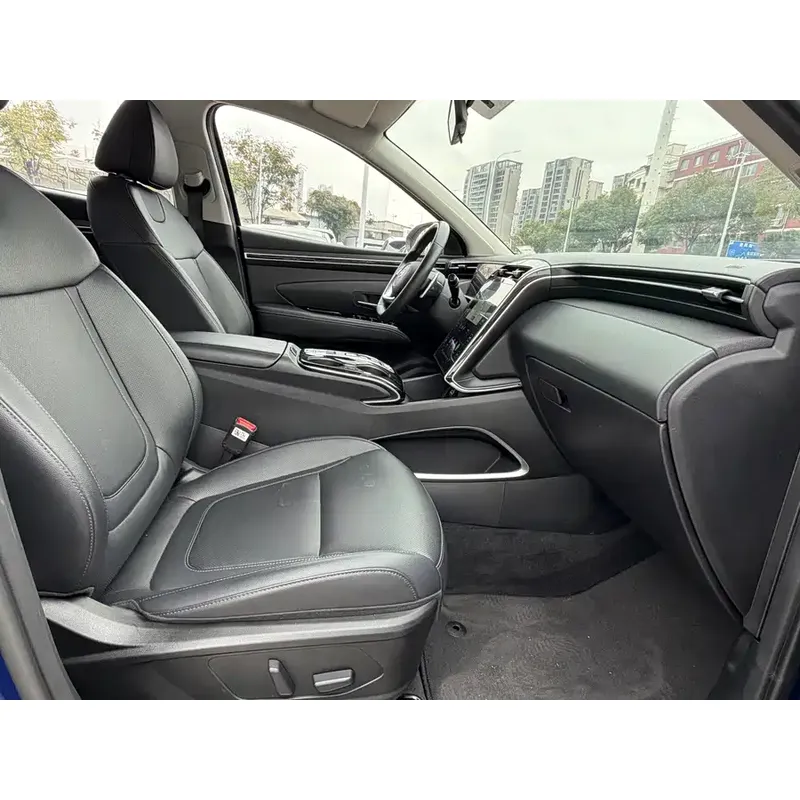 Подержанный Hyundai Tucson L HEV TOP 2022 года выпуска, комплектация Flagship, сиденья из искусственной кожи, электрорегулировка передних сидений, подогрев и вентиляция передних сидений.